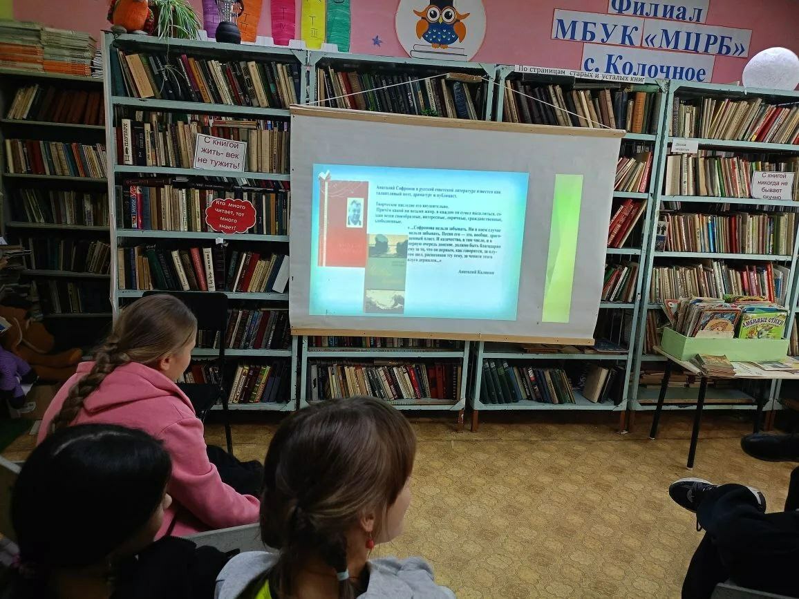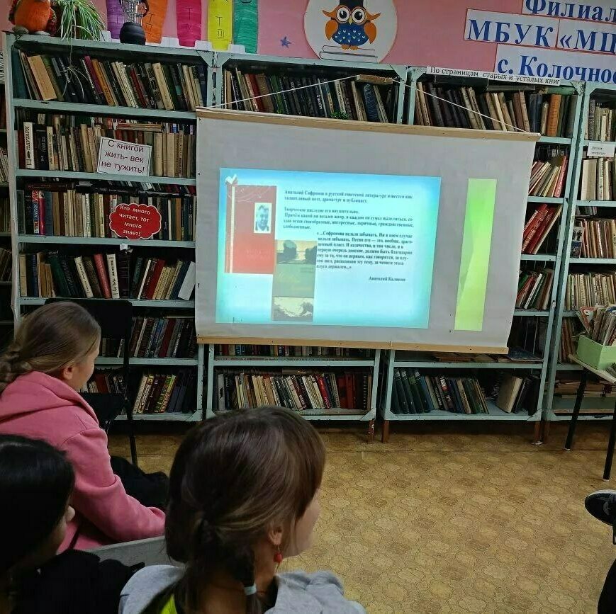 В библиотеке-филиале МБУК «МЦБ» ЧитМО с. Колочное вместе с детьми посмотрели и затем обсудили презентацию «Человек- крепость…», которая рассказала о жизненном пути советского писателя Анатолия Владимировича Сафронова.