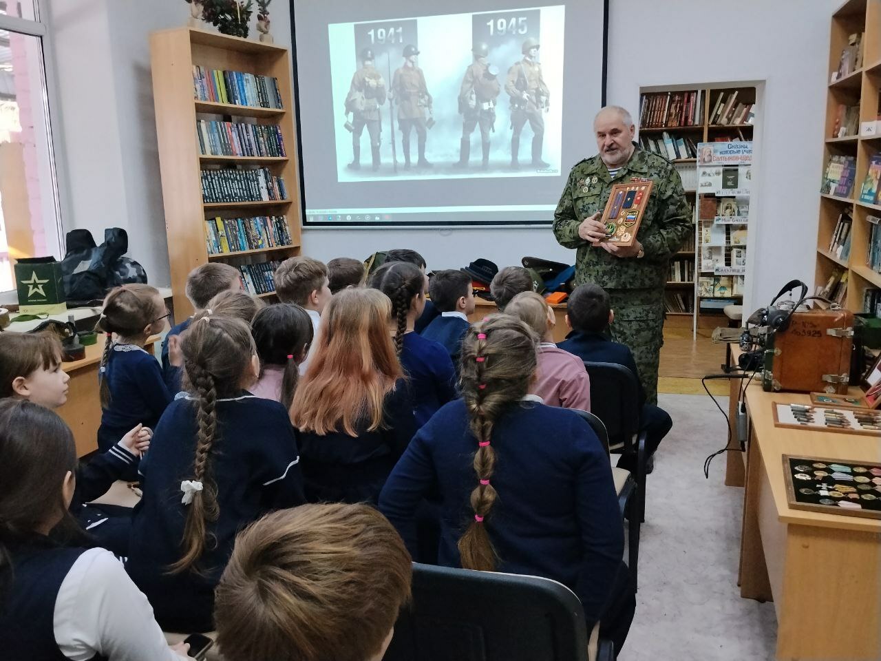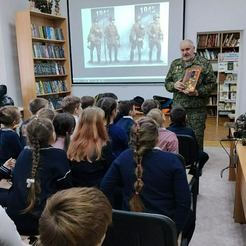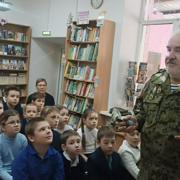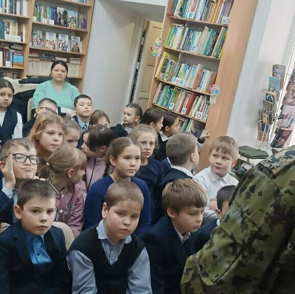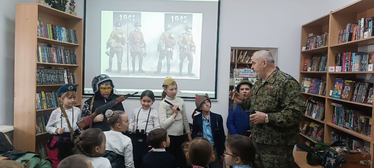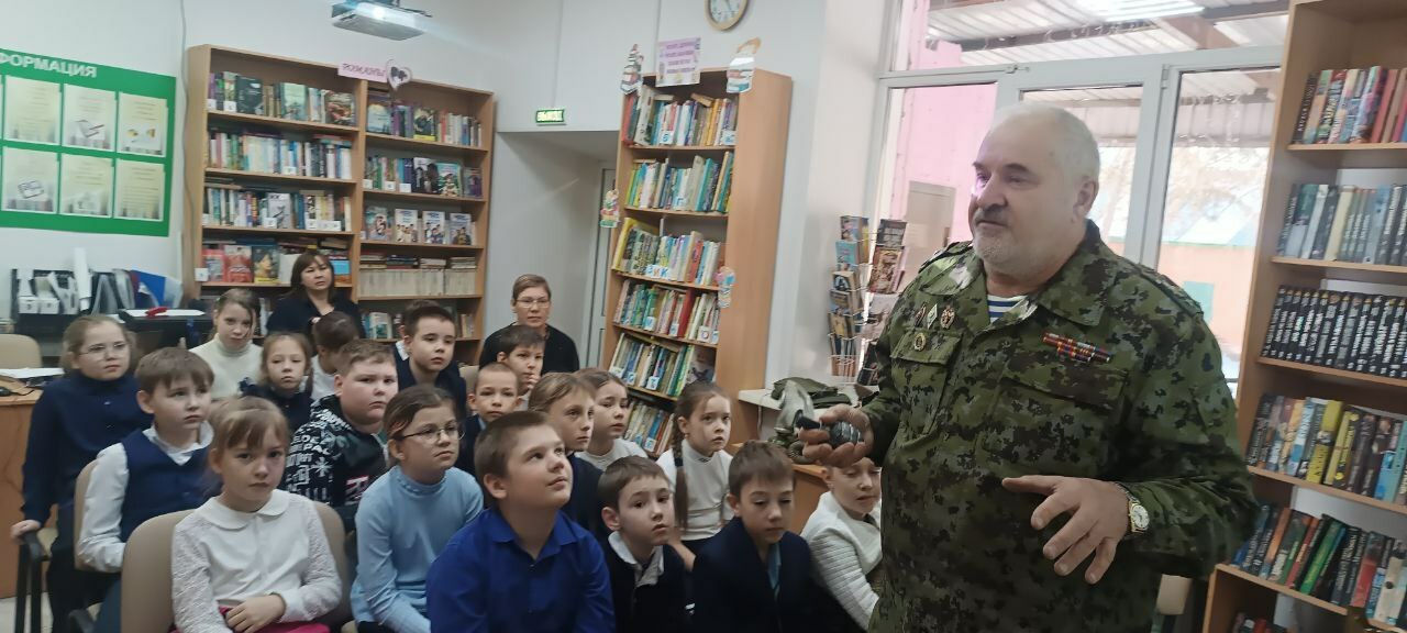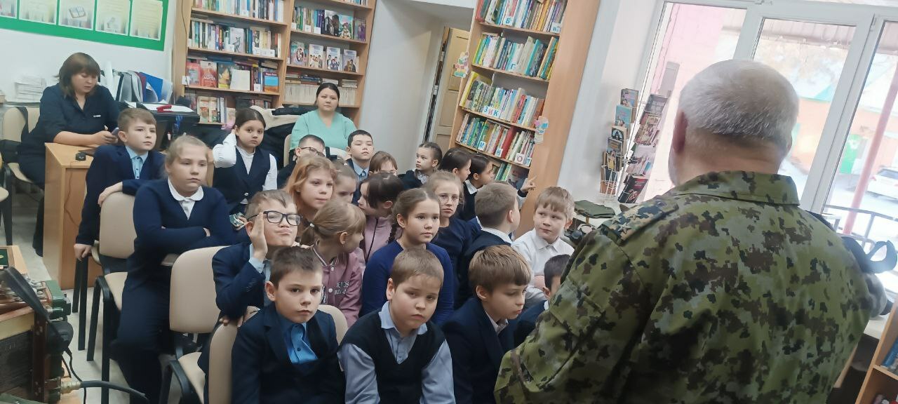 16 января 2026 года в МБУК «МЦБ» пгт. Атамановка в рамках реализации проекта по патриотическому воспитанию молодёжи состоялась встреча учеников начальных классов со Снегирёвым Николаем Ивановичем, Почетным работником сферы воспитания детей и молодёжи Российской Федерации, педагогом дополнительного образования Центра дополнительного образования Читинского муниципального округа МАОО СОШ №1 с. Смоленка, основателем передвижной выставки вооружения и снаряжения периода ВОВ и СВО.