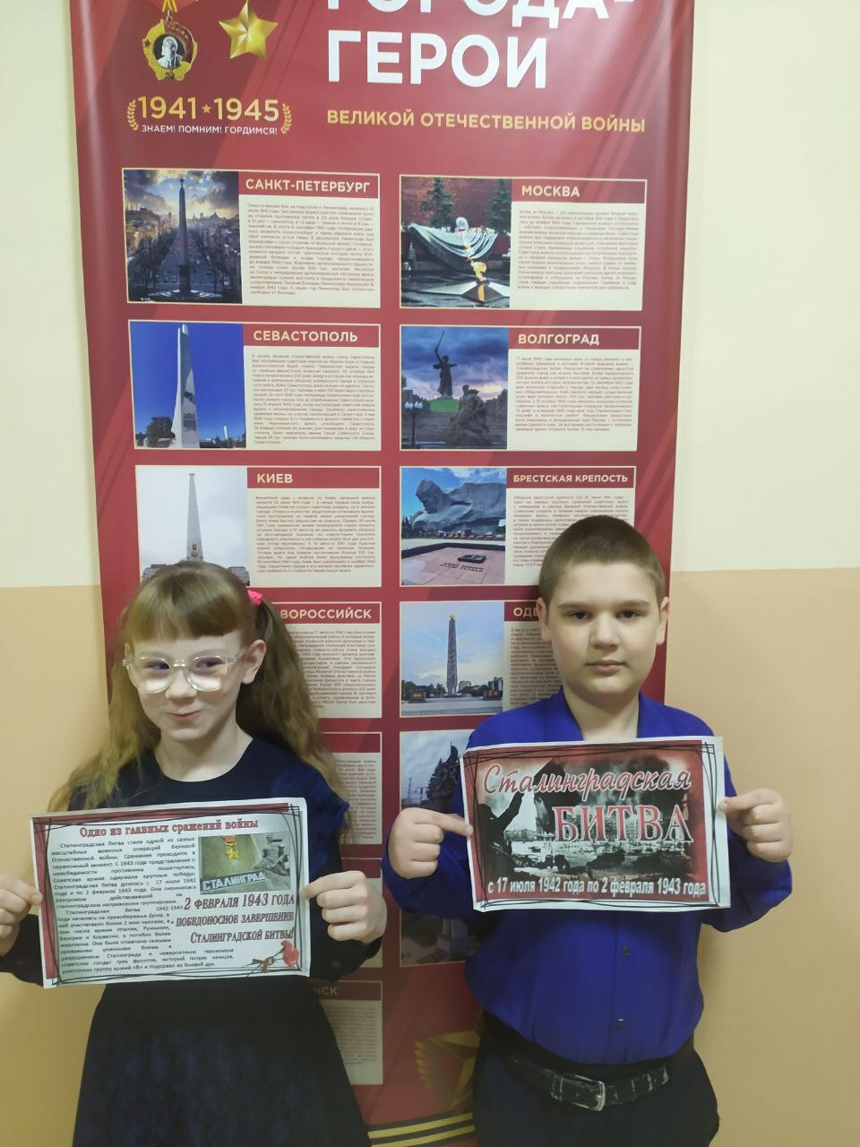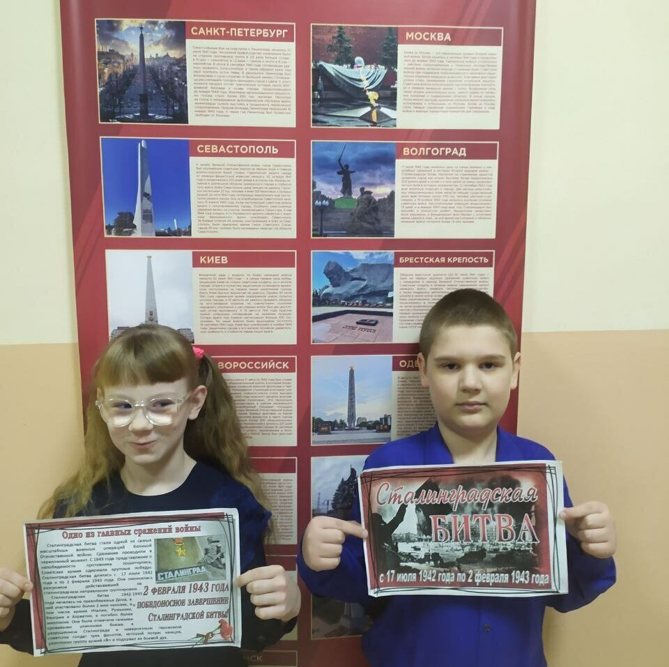 2 февраля 2026 года сотрудники Центральной детской библиотеки-филиала МБУК «МЦБ» ЧитМО провели в МОУ СОШ пгт. Атамановка Исторический час к дню разгрома советскими войсками немецко-фашистских войск под Сталинградом (1943) «Ты выстоял великий Сталинград».