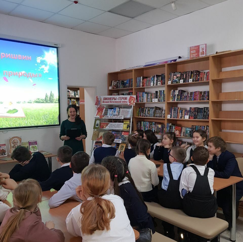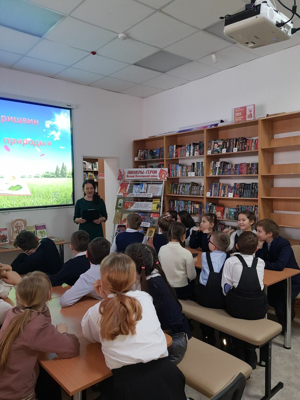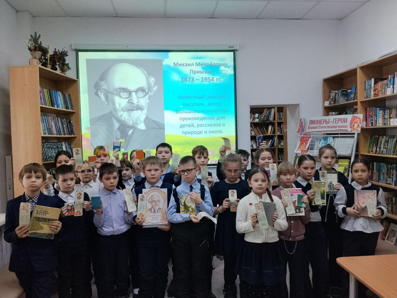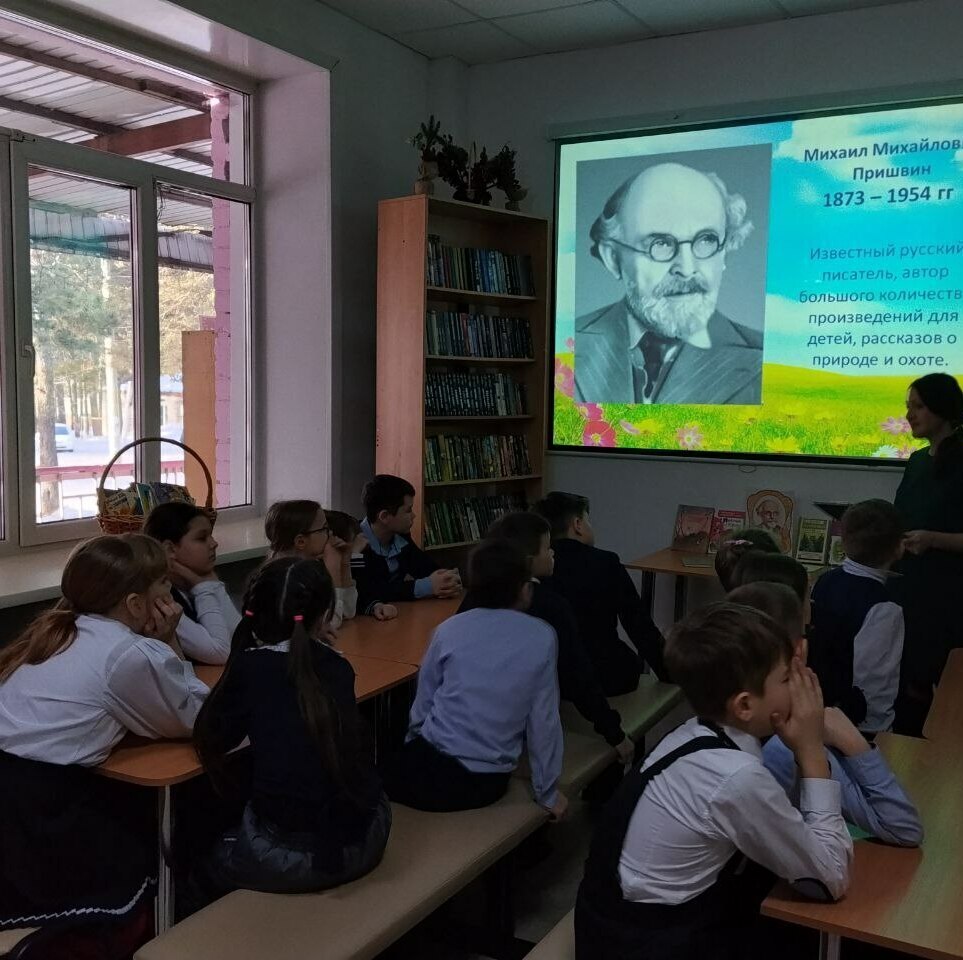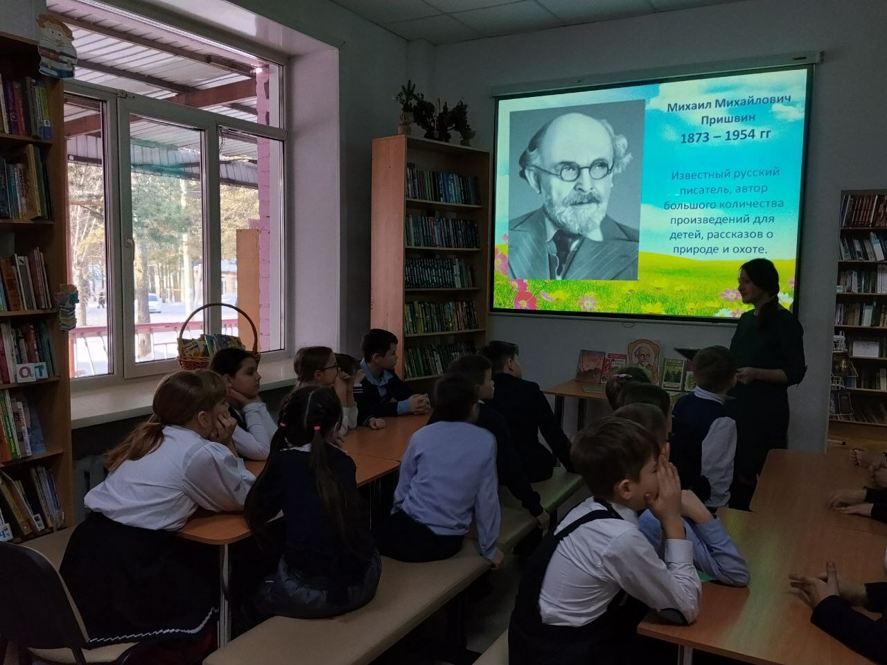 Мероприятие началось с разговора о природе, животных и птиц. Познакомившись поближе с творчеством писателя, школьники узнали, что он любил природу, умел ее видеть и слышать, а также любил свою родную землю и учил ее беречь.