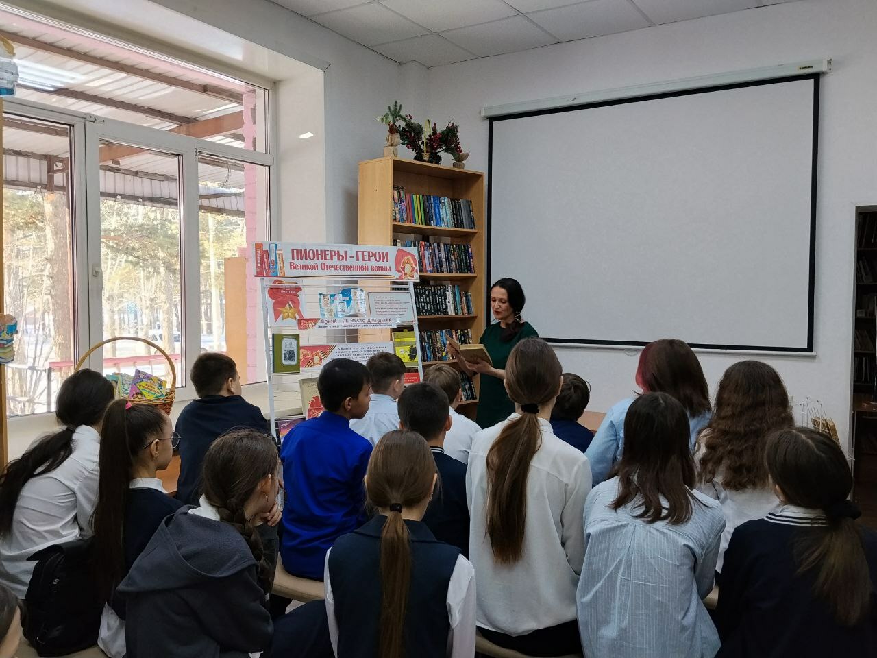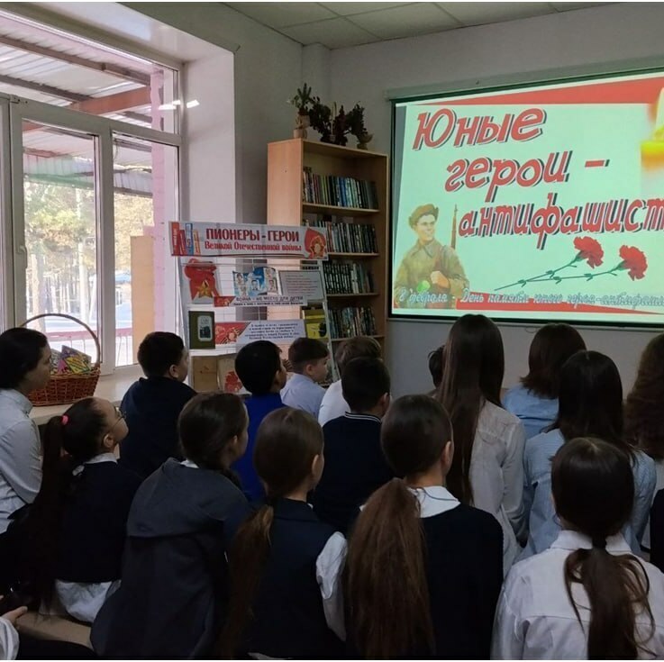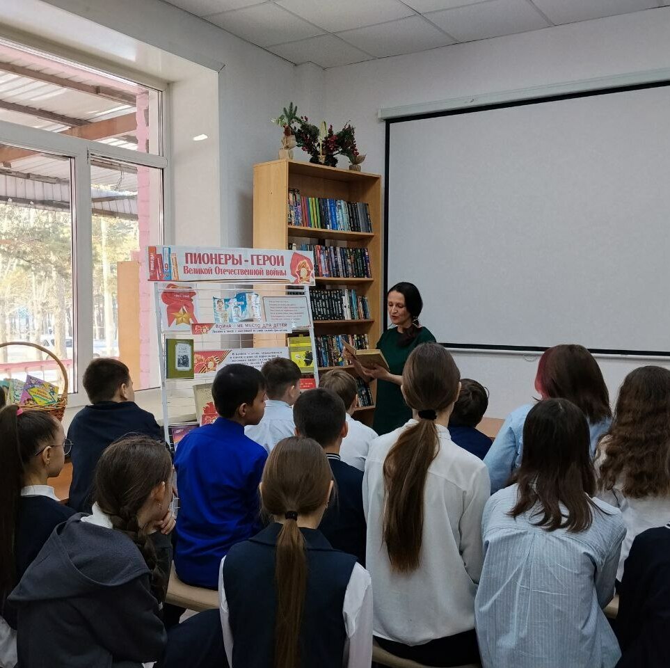 В рамках данного проекта для учащихся 6-го класса МОУ СОШ пгт. Атамановка состоялся патриотический час «В маленьком сердце – священный огонь», посвящённый Дню юного героя-антифашиста. Библиотекарь рассказала о значении Дня воинской славы и о подвигах пионеров-героев.
