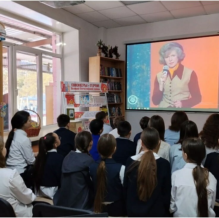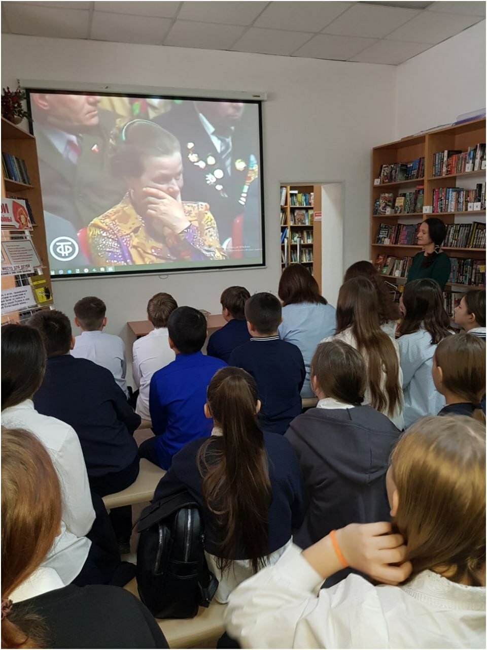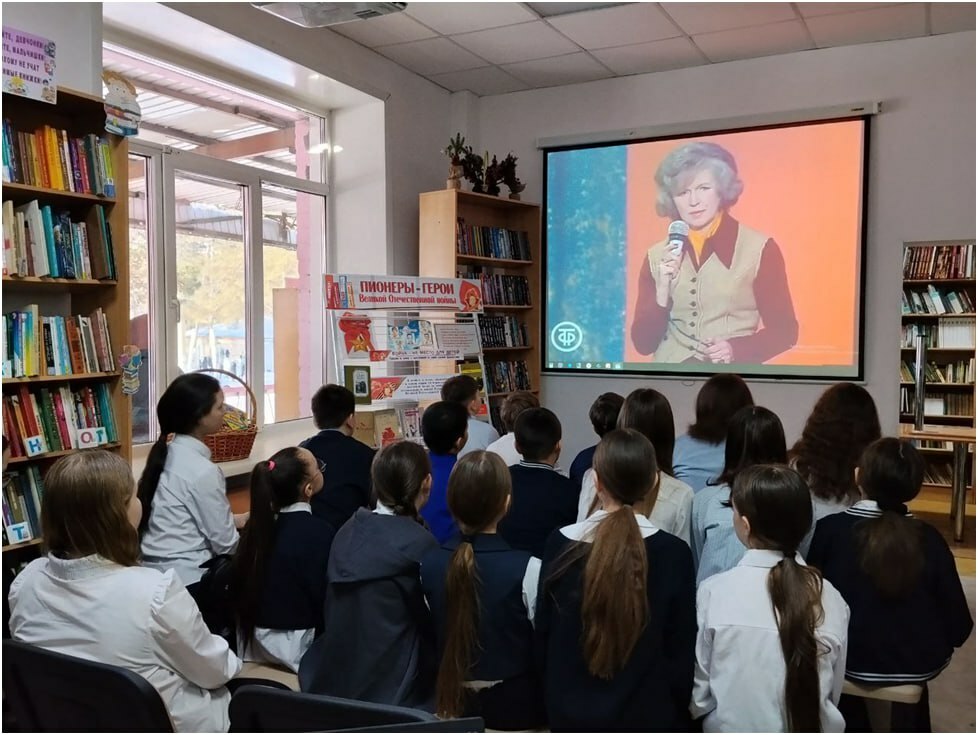 Вниманию школьников был представлен отрывок из телепередачи «От всей души» (Смоленские встречи. 1977г.), а также короткометражный фильм о смелости и самоотверженности пионера-героя Зины Портновой.